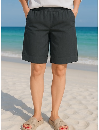 Mujer Lino de algodón sintético Chinos Pantalones cortos de verano Clásico Corto Cintura Media Rígido Casual Diario Marrón oscuro Negro 1 # Azul Marino Oscuro Morado Verano