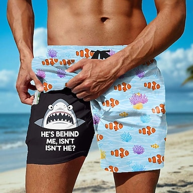 Hombre Tiburón Criaturas del mar Argot divertido Pantalones cortos forrados Bañador 2 en 1 Pantalones de Natación Media cintura Hawaiano Festivos Bolsillos laterales con forro de compresión Cintura