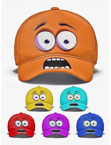 Gorra de béisbol con cara de dibujos animados para hombre: divertido diseño de ojos 3D y boca abierta, disponible en varios colores, perfecta para uso casual y al aire libre.