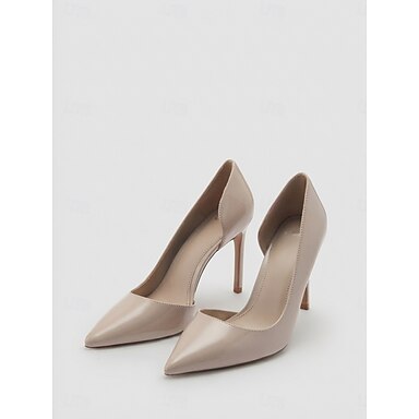 Zapatos de tacón de aguja color nude con punta afilada para mujer: elegantes zapatos de cóctel y de noche.