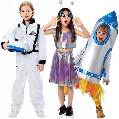 Grupo Extraterrestre Astronauta cohete Traje de cosplay Cosplay Niños Chico Chica Víspera de Todos los Santos Carnaval Fiesta Rendimiento Escenario Disfraces fáciles de Halloween Disfrazarse