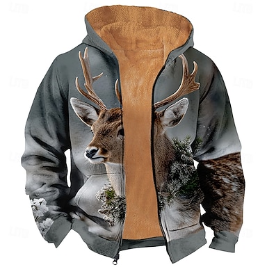 Hombre Venados Sudadera Moda Clásico 3D Manga Larga Cuello Barco Exterior Caza Amarillo Rojo Marrón Gris Correa Otoño Invierno Diseñador S M L XL XXL XXXL