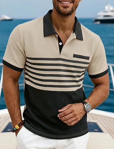 Hombre Camiseta de golf Polo de punto gofre Casual Negocio Clásico Manga Corta Moda Moderno Color sólido A Rayas Botones Verano Primavera Ajuste regular Blanco Azul Real Verde Trébol Caqui Gris