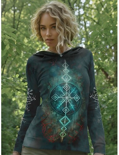 Camiseta Boho de Mujer Gráfica Geometría Vintage Estil Clásico Manga Larga Con Capucha Tops Regulares Diarios Fin de Semana Impresión Azul Negro Beige Primavera