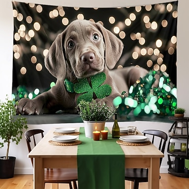 Día de San Patricio tapiz Carteles Manta Perro Trébol Estilo lindo Romántico 3D Cuarto Sala Residencia universitaria Habitación de adolescentes Porche de pared Decoración del hogar