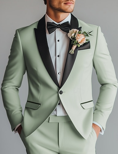 De los hombres Smoking Trajes de fiesta boda en la playa Boda de primavera Verde Claro Primavera verano Traje Solapa de Muesca Moda Formal Color sólido Estándar Juego de 2 piezas Recto 1 botón