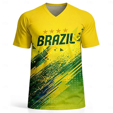 Unisexo Brasil Verano de fútbol Partido global Tops tipo jersey Camiseta para correr Verano Bloque de Color Manga Corta UPF 50 Secado rápido Transpirable Casual Corriendo Correr Aptitud física