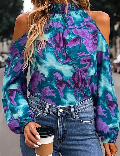 Mujer Camisa Graphic Geométrico Vintage Elegante Moderno Manga Larga Cuello Camisero Tops regulares Diario Festivos Azul Piscina Rojo Morado Verde Trébol Otoño Invierno