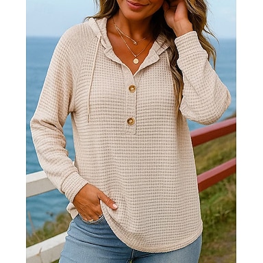 Mujer Color sólido Tops casuales Sudadera con capucha Otoño Botones Manga Larga Ropa Deportiva Al Aire Libre Viaje Deportes Negro Rosa Azul Ropa de deporte Ropa de Deporte