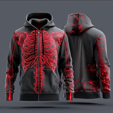 Hombre 3D Calavera Sudadera Punk Fresco Gótico Manga Larga Cuello Barco Fiesta Regalo Ropa de calle Azul cielo Rojo Naranja Verde Trébol Correa Cremallera Otoño Invierno Diseñador S M L XL XXL XXXL