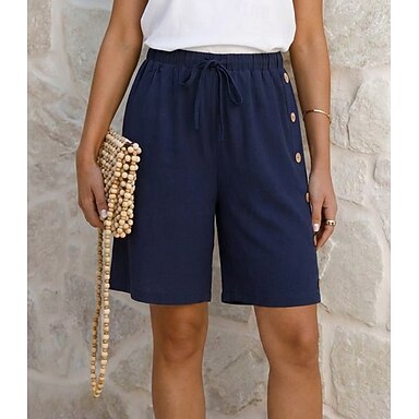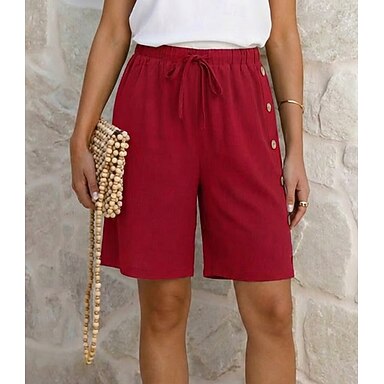Mujer Pantalón corto Pantalones cortos de verano Pantalones cortos Burmuda Pantalones cortos de playa Vacaciones Moda Casual / Diario Longitud de la rodilla Media cintura Color sólido Plano Correa