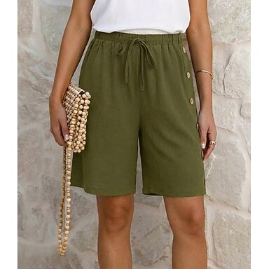 Mujer Pantalones Capri Lino de algodón sintético Chinos Pantalón corto Vacaciones Moda Ropa de calle Longitud de la rodilla Alta cintura Plano Bolsillo Cintura elástica Transpirabilidad Cómodo Rígido