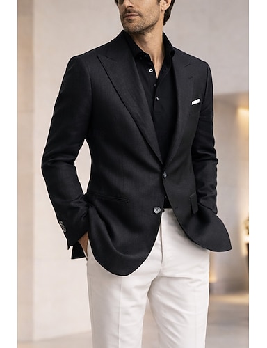 Hombre Chaqueta de lino Cuello de muesca Moda Clásico Casual Color sólido Blazer de lino Negro Blanco Rosa A Medida Dos botones de un solo pecho