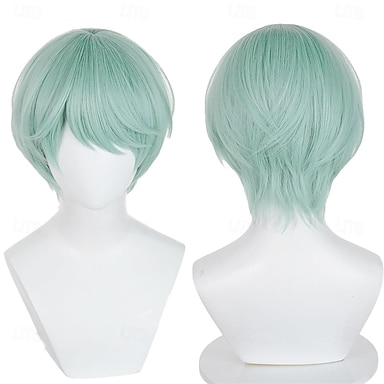 Peluca corta verde de estrella del pop inspirada en ídolos coreanos de anime para fiestas de Halloween.