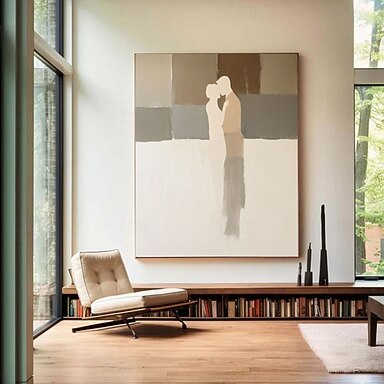 Pintura al óleo minimalista hecha a mano, pintura abstracta de pareja, lienzo con líneas de amor para decoración romántica moderna, arte de pared abstracto de pareja, pintura en tonos cálidos para la