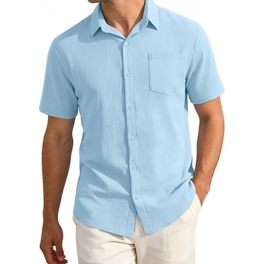 Hombre Camisa Camisa de gofres Camisa casual Abotonar la camisa Negro Blanco Vino Azul Marino Marrón Manga Larga Plano Diseño Casual Diario Ropa Moda Ropa de calle