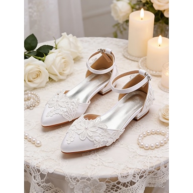 Zapatos planos con tiras en el tobillo y encaje blanco para mujer, elegantes zapatos de novia para bodas en la iglesia.