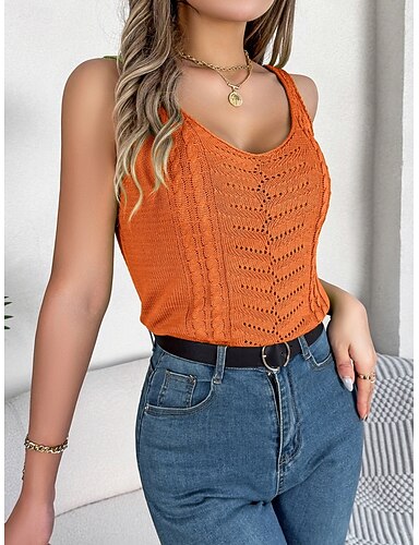 Mujer Tops tejidos de canalé Camiseta sin mangas Camiseta superior Color sólido Moda Elegante Clásico Sin Mangas Escote en Pico Tops regulares Diario Noche Fin de semana Blanco Naranja Verde Trébol