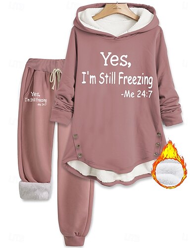 Conjunto de 2 piezas de ropa de casa para mujer sudadera y joggers casual clima frío impresión de frase con forro de forro polar cómodo ajuste de invierno