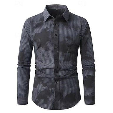 Hombre Camisa para Vestido Camisas estampadas Raya Exterior Vacaciones Negro Morado Manga Larga Cuello Vuelto Primavera verano Ropa Estampado
