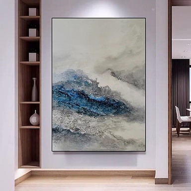 Pintura al óleo hecha a mano, lienzo, arte de pared, decoración, olas de aguas profundas, abstracto, para decoración del hogar, sala de estar, pintura enrollada sin marco y sin estirar.