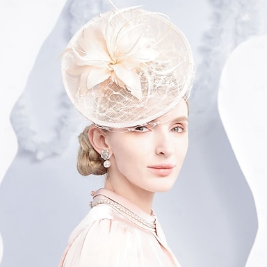 Diademas para la cabeza, platillo de fibra, sombrero de copa, fiesta de té de boda, elegante boda con encaje lateral, tocado de tul