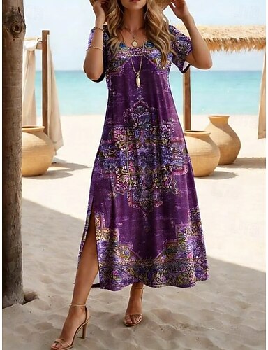 Vestido de Fiesta en Línea A de Longitud de Tobillo Vestido de Cóctel Vestido de Invitada de Boda Vestido de Madre de la Novia de Manga Corta Cuello en V Elegante Fiesta Vintage de Satén para