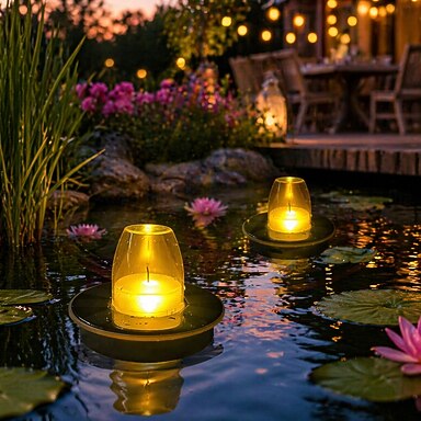 1/2 unidad de vela flotante solar impermeable para exteriores, lámpara LED decorativa para estanques, piscinas, acuarios, fuentes, césped y caminos: iluminación ambiental para paisajes.