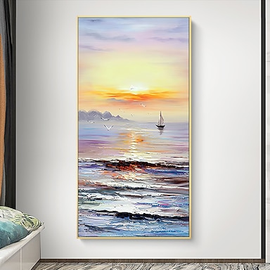 Mintura pinturas al óleo abstractas hechas a mano de paisajes de barcos sobre lienzo, decoración de arte de la pared, imagen moderna para decoración del hogar, pintura enrollada sin marco y sin