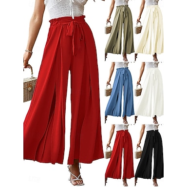 Mujer Perneras anchas Chinos Columpio Elegante Vacaciones Vintage Longitud total Alta cintura Color sólido Retazos Cintura elástica Confortable Transpirabilidad Cómodo Rígido Diario Hogar Exterior
