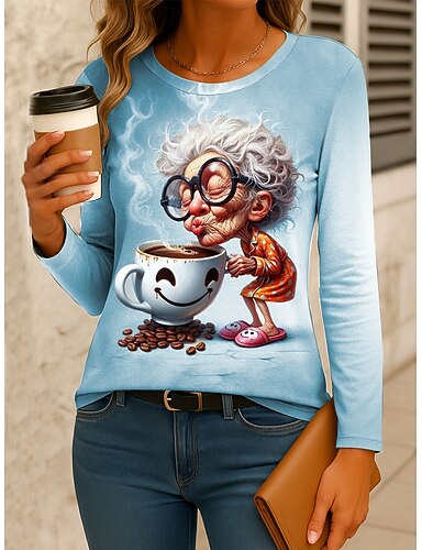 Mujer Camiseta Estampado Graphic Caricatura Degradado Vintage Elegante Clásico Manga Larga Cuello Barco Tops regulares Diario Azul Piscina Rosa Morado Verde Trébol Gris Primavera Otoño Invierno