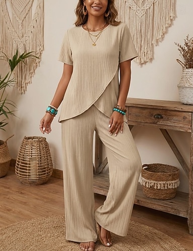 Mujer Camiseta Conjuntos de pantalones parte superior del bolero Manga Corta Cuello Barco Escote Redondo Color sólido Moda Ropa de calle Diario Exterior Vacaciones Rojo Azul Marino Verde Trébol Verano