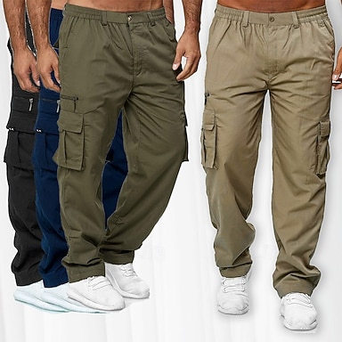 Hombre Pantalones cargo Pantalones Pantalones deportivos tipo cargo Cintura elástica Multi bolsillo Puño elástico Plano Listo para vestir Exterior Diario Acampada y Senderismo Moda Clásico Negro