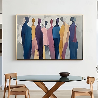 Pintura al óleo abstracta de personas pintada a mano, arte figurativo colorido, decoración de pared moderna para sala de estar, entrada, comedor