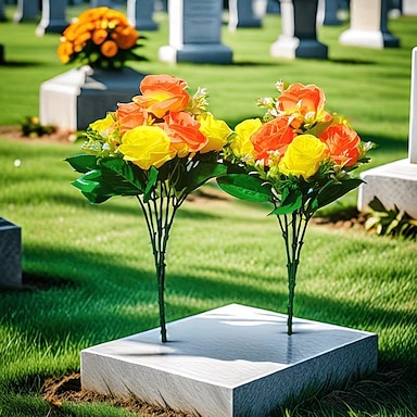 2/4 piezas de flores artificiales para cementerio para el Día de los Caídos, adecuadas para decoraciones conmemorativas al aire libre, funerarias, cementerios y eventos de recuerdo, decoraciones del