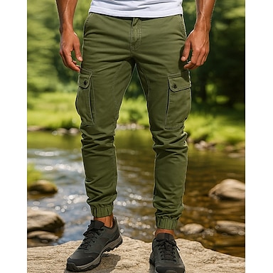 Hombre Pantalones cargo Pantalones para senderismo Primavera Otoño Al aire libre Ajuste regular Impermeable Resistente al Viento Prendas de abajo Bolsillo Negro Verde Ejército Algodón Camping