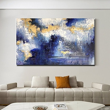 Pintura al óleo pintada a mano hecha a mano, arte de pared, pinturas abstractas de color azul claro, decoración del hogar, lienzo enrollado, sin marco, sin estirar