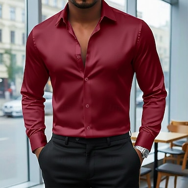 Hombre Camisa Camisa de raso Camisa para Vestido Camisa casual Abotonar la camisa camisa de baile Plano Formal Boda Negro Blanco Vino Azul Piscina Manga Larga Diseño Todas las Temporadas Ropa