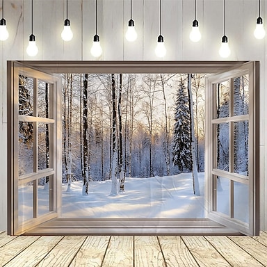 Tapiz con patrón de ventana con paisaje nevado, gran mural decorativo para colgar en la pared, tela de fondo para fotografía, decoración del hogar para dormitorio, sala de estar u oficina.