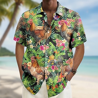 Hombre Árbol de coco Gallo Plantas tropicales camisa hawaiana Abotonar la camisa Manga Corta Hawaiano Gracioso Vacaciones Ropa de playa Verano Primavera Cuello Vuelto Impresión 3D camisas con cuello
