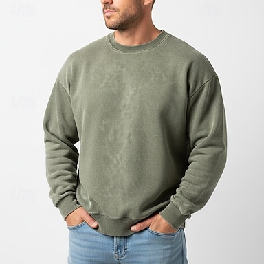 Hombre Sudadera Sudadera Con Capucha Negro Morado Verde Trébol Caqui Café Cuello Barco Cuello Mao Plano De Gran Tamaño Casual Diario Deporte Vintage Ropa de calle Fresco Primavera & Otoño Otoño