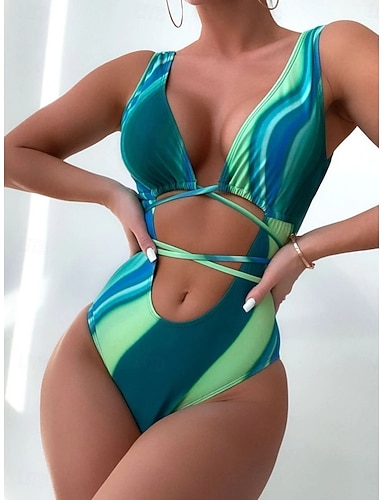 Mujer Bañadores Una pieza Monokini Traje de baño Control de barriga Alta cintura Delgado Espalda al Aire Vacaciones Ropa de playa Ombre Escote en Pico Sin Mangas Trajes de baño