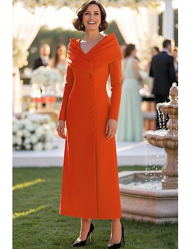 Mujer Vestido de esmoquin Funda Columna Formal Invitado a la boda Satén Crepé Elegante Sencillo Manga Larga Hasta el Tobillo Muslo dividido Solapas con muescas Botonadura Doble