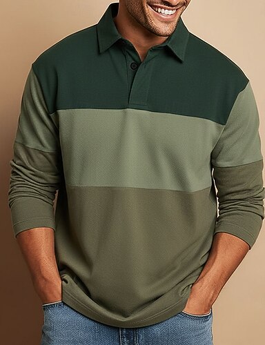 Hombre Bloque de color Polo Manga Larga Camisas de polo Camisas con cuello Informal de negocios Ropa Deportiva Ropa Cotidiana Impresión 3D Primavera Otoño Azul Piscina Morado Marrón