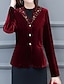 Mujer Americanas De Terciopelo Cómodo Botones Elegante Vintage Tropical Casual Color sólido Diario Festivos Noche Trajes de fiesta Escote en V Profunda Ajuste regular Manga Larga Ropa de calle Rojo