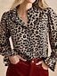 Mujer Camisa Graphic Leopardo Geométrico Elegante Casual Manga Larga Cuello vuelto holgado Escote en Pico Tops regulares Trabajo Ropa de fiesta de noche Diario Frunce En Cortina Negro Marrón claro