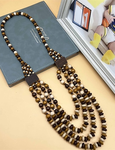 1 PC Collar For Mujer Calle Diario De madera Largo Cuentas