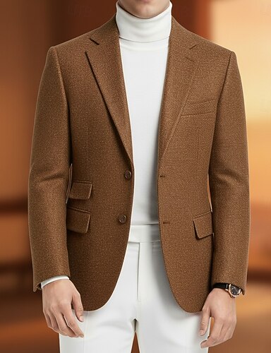 Hombre Blazer de tweed Cuello de muesca Moda Clásico Casual Color sólido Espiga Blazer Marrón Azul Oscuro Estándar Dos botones de un solo pecho