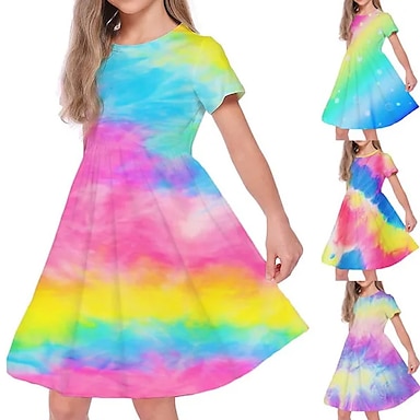 Girls ' 3D Graphic Unicornio Vestido Manga Corta Verano Primavera Vacaciones Diario Festivos Princesa Hermosa Dulce Niños 4-12 años Vestido informal Vestido de una línea Hasta la Rodilla Ajuste