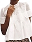 Mujer Camisa de verano Camisa casual Blusa Ribete de encaje Color sólido Vacaciones Elegante Casual Manga Corta Cuello Barco Tops regulares Diario Playa Festivos Azul Piscina Negro Blanco Rosa Rojo